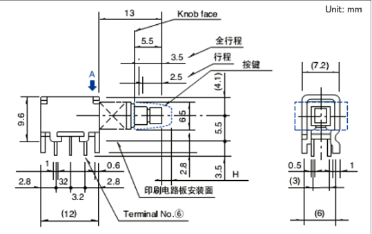 7.2x129.6mm 2.5mmÐгÌÎÔʽ ÀûÓø˸߶È5.5mm, ¿ÉÔÚ²Ù×÷°åÉÏÖ±½Ó×°ÖÃ?