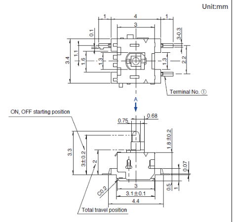 3.4x3x2.3mm 小型单向行动型 3.4×3.0mm,业界最小级别,可以对应小型数字设备。