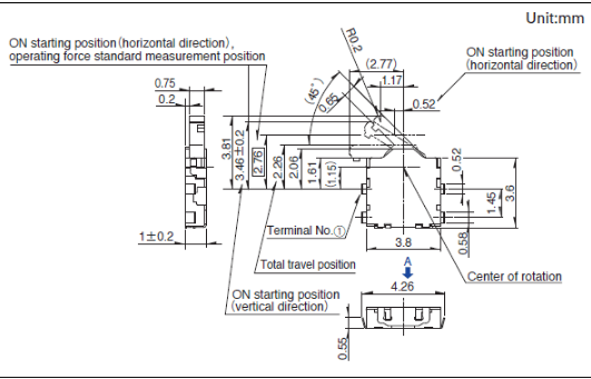 3.8x3.6x1mm 薄型双向行动型 厚度为1mm的薄型。