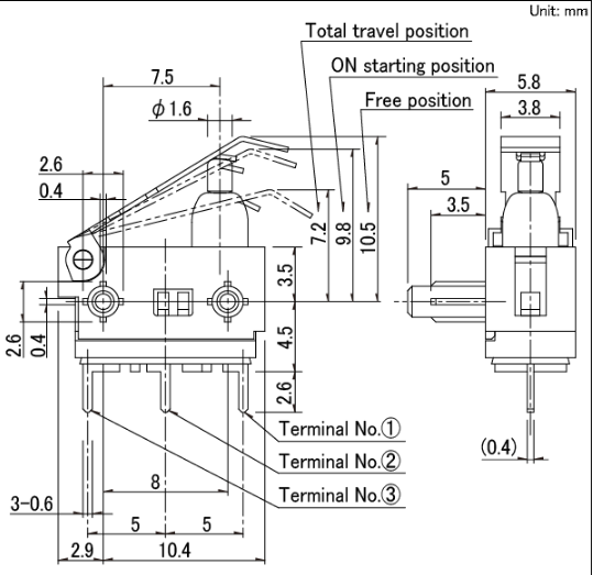 13.3x5.8x8mm 防水型 带防水功效的3mm的长行程型。