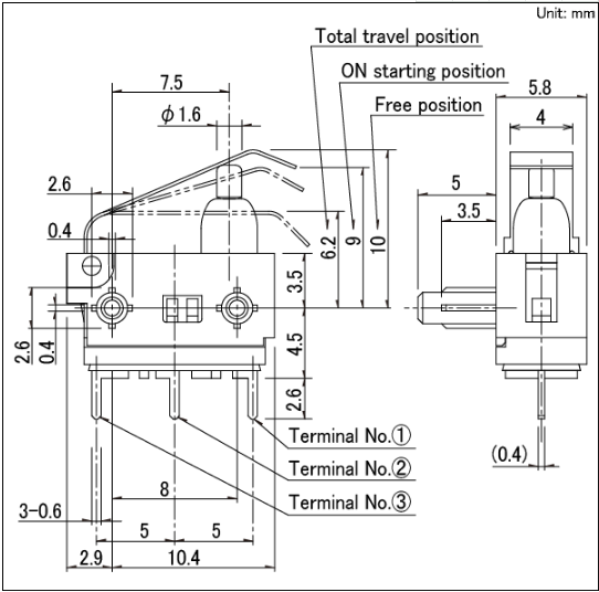 13.3x5.8x8mm 防水型 带防水功效的3mm的长行程型。
