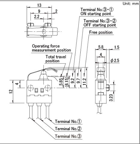13x5.8x8.35mm 防水型 无驱动机构,可斜压的长行程型。