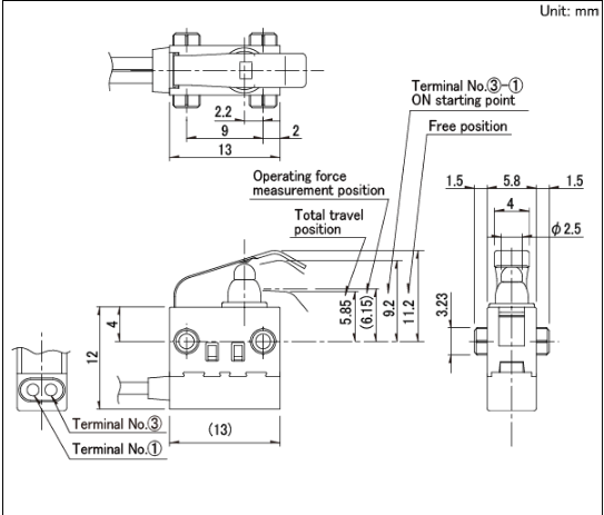 13x5.8x8.35mm 防水型 无驱动机构,可斜压的长行程型。