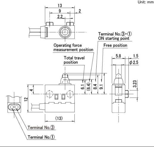 13x5.8x8.35mm 防水型 无驱动机构,可斜压的长行程型。