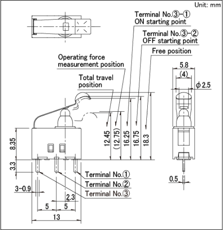 13x5.8x8.35mm 防水型 无驱动机构,可斜压的长行程型。