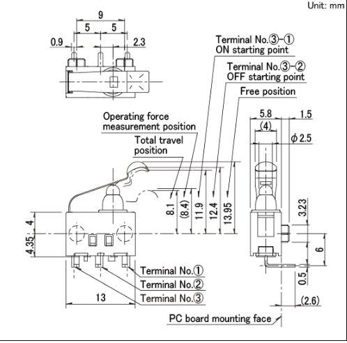 13x5.8x8.35mm 防水型 无驱动机构,可斜压的长行程型。