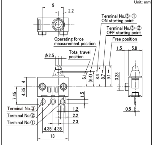 13x5.8x8.35mm 防水型 无驱动机构,可斜压的长行程型。