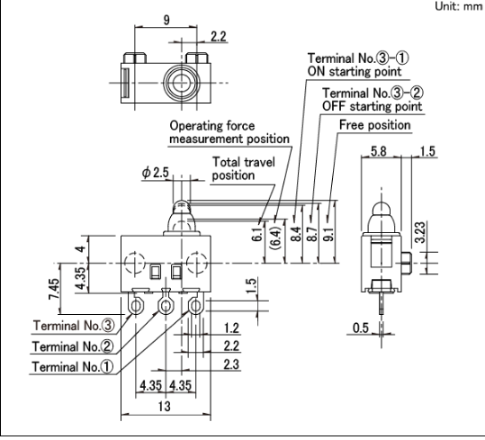 13x5.8x8.35mm 防水型 无驱动机构,可斜压的长行程型。