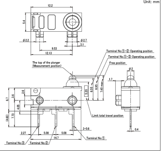14.75.46.7mm 防水型 主体高度为6.7mm,低背式。