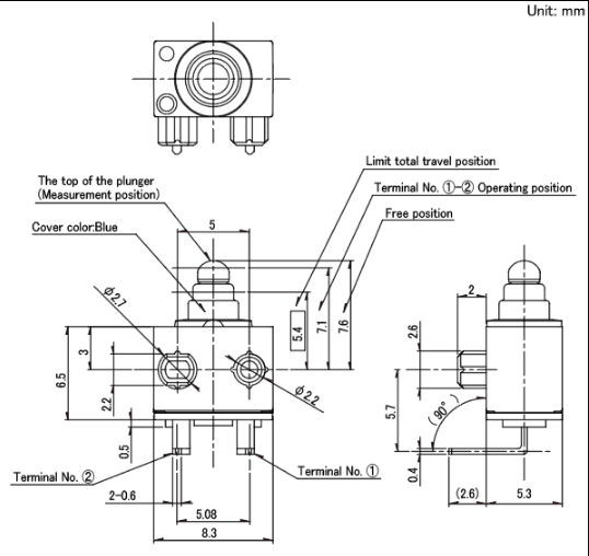 防水型业界最小本体尺寸8.3×5.3×7mm。