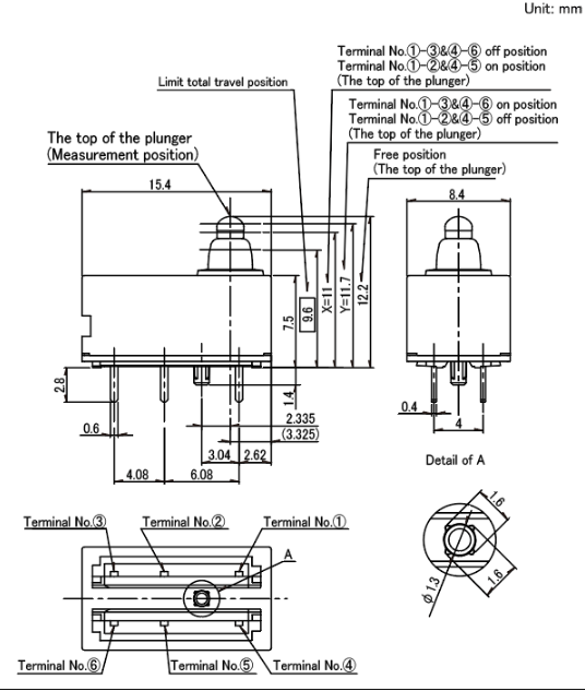 15.4x8.4x7.5mm 防水型 不赖操作置与速度,实现稳定接触的双电路同时切换开关。