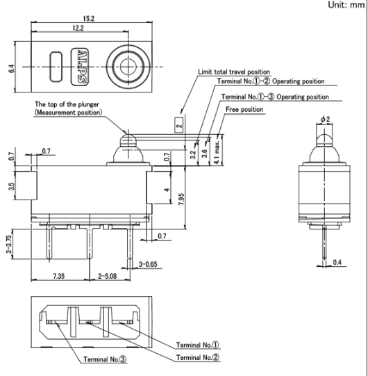 15.2x6.4x7.95mm 防水型 运用叉型端子可实现免焊锡连接。