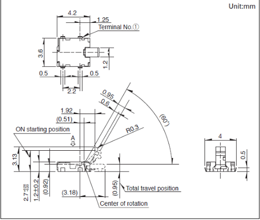 3.6x4.2x1.2mm ±¡ÐÍ¿ØÖƸËÐÍ ¸ß1.2mmµÄ±¡ÐÍ£¬³¤ÐгÌÐÍ¡£