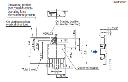 5.6x4.7x1.9mm 厚度为1.9mm、双向行动型 可实施双向检测的、本体厚度为1.9mm的外貌贴装型。