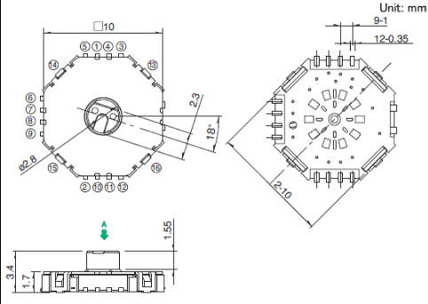 10x10x1.7mm 大扭矩触控式薄型 最大可支持10个档位的模式切换开关。