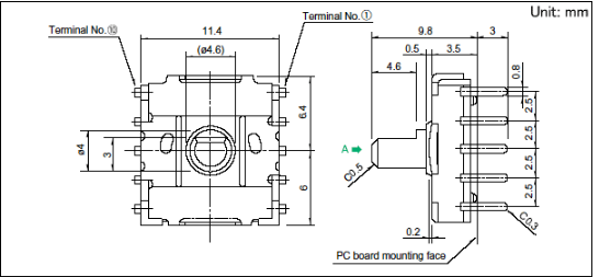 11.4x12.4x3.5mm 9接点对应竖型 通过独吞的节度机构实现了轻快操作感受的薄型。