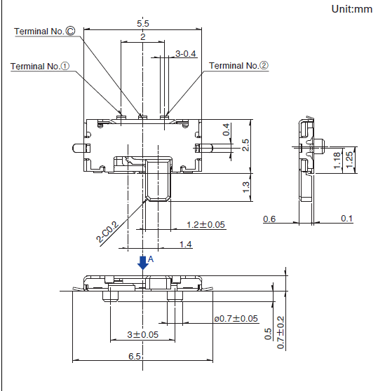 高度为0.7mm、行程为1.4mm的外貌贴装型 本体高度为0.7mm的小型产品。