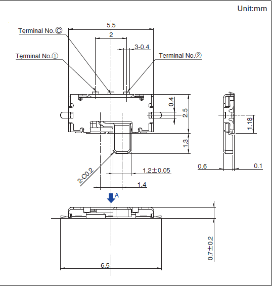 高度为0.7mm、行程为1.4mm的外貌贴装型 本体高度为0.7mm的小型产品。