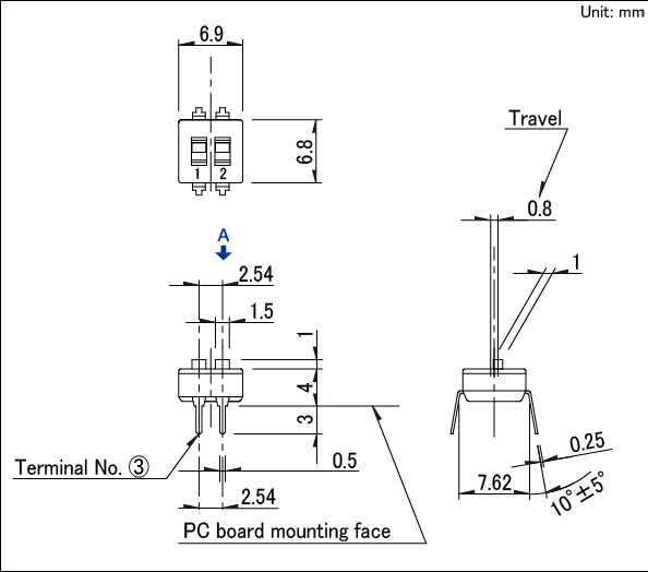 对应2~10电路的 实现金接点的高可靠性, 与IC相同形状可自动插入。