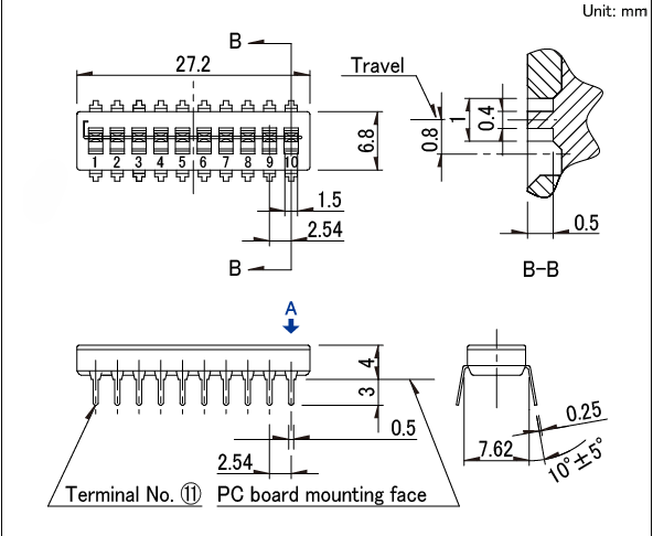 对应2~10电路的 实现金接点的高可靠性, 与IC相同形状可自动插入。