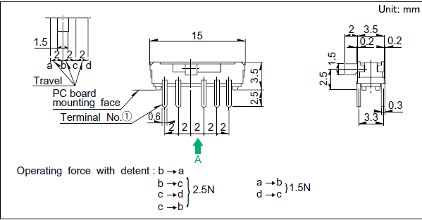 3.5(H)mm, 2.0mm行程型 适应种种携带式机械的小型·高密度化。