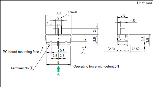 3.5(H)mm, 2.0mm行程型 适应种种携带式机械的小型·高密度化。