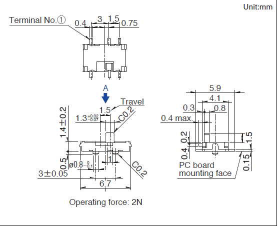 1.4(H)mm, 1.5/2.0mm行程的外貌贴装型 本体高度1.4mm的薄型滑动开关。