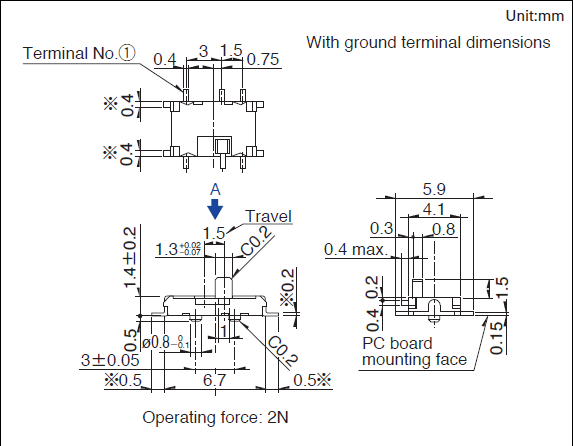 1.4(H)mm, 1.5/2.0mm行程的外貌贴装型 本体高度1.4mm的薄型滑动开关。