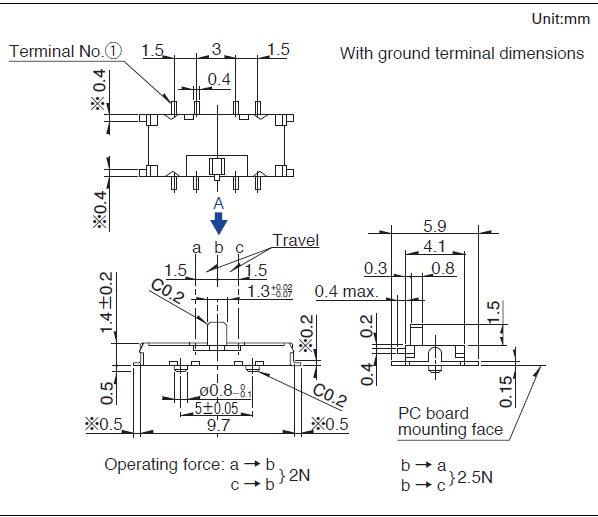 操作部厚度: 0.8mm