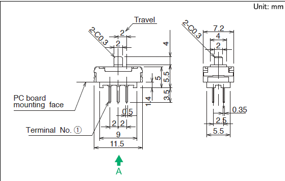 5.0(H)mm, 2.0mm行程型 ,被公认为使用便当的中型通用型