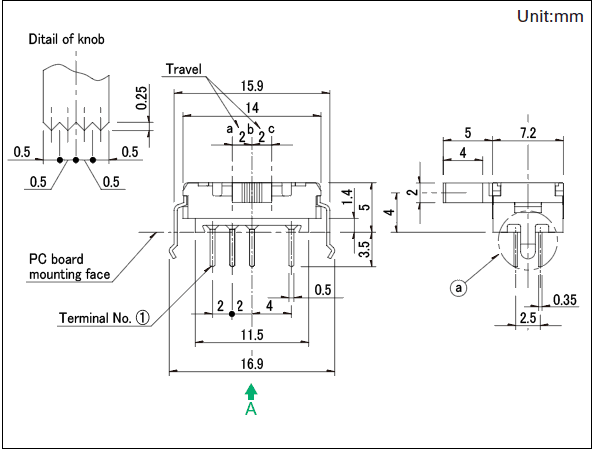 5.0(H)mm, 2.0mm行程型 ,被公认为使用便当的中型通用型