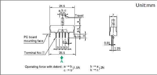 最大额定/最小额定(电阻负载) 0.1A 30V DC/50μA 3V DC ,接触电阻(初期/寿命后) 25mΩ max./65mΩ max. ,无负载寿命 10,000 cycles 45mΩ max.负载寿命(最大额定负载) 10,000 cycles 65mΩ max.操作部长度: 9mm ,电路数