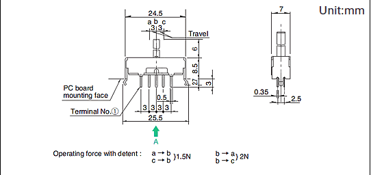最大额定/最小额定(电阻负载) 0.1A 30V DC/50μA 3V DC,接触电阻(初期/寿命后) 25mΩ max./65mΩ max.,无负载寿命 10,000 cycles 45mΩ max.负载寿命(最大额定负载) 10,000 cycles 65mΩ max.操作部长度: 6mm,电路数